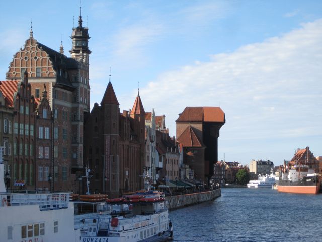 In Gdansk wollten wir als erstes eine VW Werkstatt aufsuchen und unser Problem mit dem Ventilator lösen. Raphi wollte aber das ganze zuerst nochmals testen und als wir den Motor stehend auf höher Temperaturen brachten, sprang der Ventilator doch prompt an. Wir verzichteten als auf das Telefon in die Schweiz und liessen auch das Suchen nach einer Werkstatt in Gdansk bleiben. Wir fuhren auf den Campingplatz 6 km ausserhalb der Innenstadt von Gdansk und fuhren per Velo in die UNESCO geschützte Innenstadt. Auf der Suche nach einem Restaurant, wo nicht nur Touris speisen, landeten wir in einem kleinen Restaurant bei der Markthalle und assen Pierogi Ruskie (Teigtaschen gefüllt mit Kartoffelbrei und Käse). Gdansk gehört auch zu jenen Städten, die nach dem 2. Weltkrieg stark zerbombt war und es ist wirklich erstaunlich was die Restaurateure hier geleistet haben.